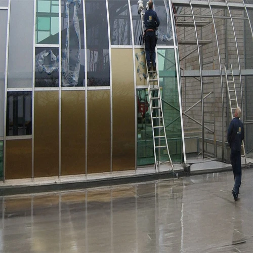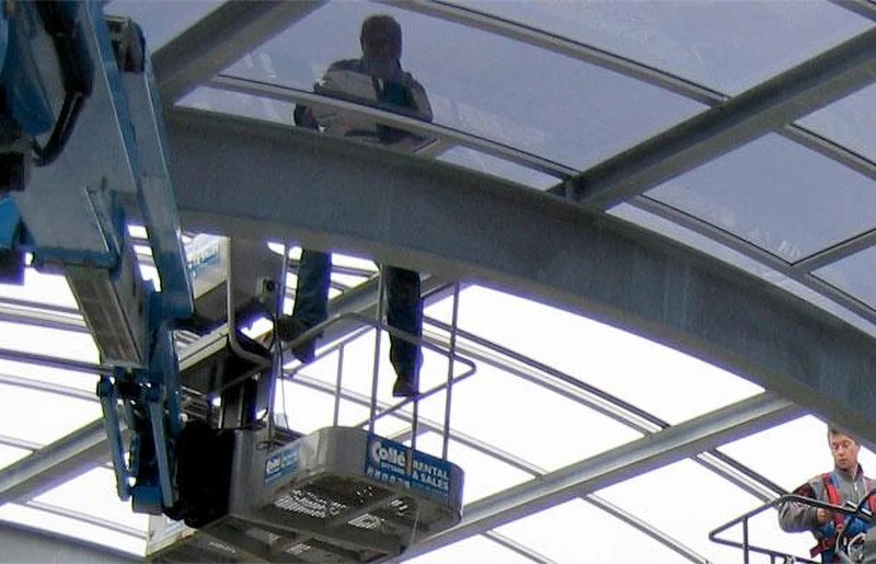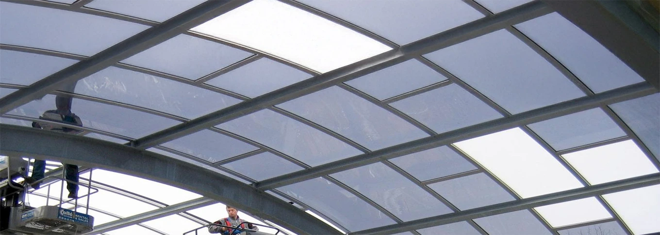 Voor een gebouw in Oirschot, bestemd voor militaire voertuigen, moesten UV-beschermde massieve polycarbonaat platen worden geplaatst, uitgevoerd in vier op maat gemaakte kleuren: translucent grijs, translucent goud, transparant donkergrijs en transparant groen. Deze kleuren werden gekozen om te voldoen aan de wens van de architect, die een verwijzing naar camouflagekleuren wilde creëren, wat het gebouw een unieke en onderscheidende uitstraling geeft. De grootste uitdaging van het project was het nauwkeurig afstemmen en aanpassen van de kleuren om aan de specifieke wensen van de klant te voldoen. Dankzij onze geavanceerde kleurtechnieken konden wij de polycarbonaat platen perfect op maat afstemmen, waardoor het eindresultaat volledig voldeed aan de verwachtingen en het ontwerp een harmonieus geheel vormt.